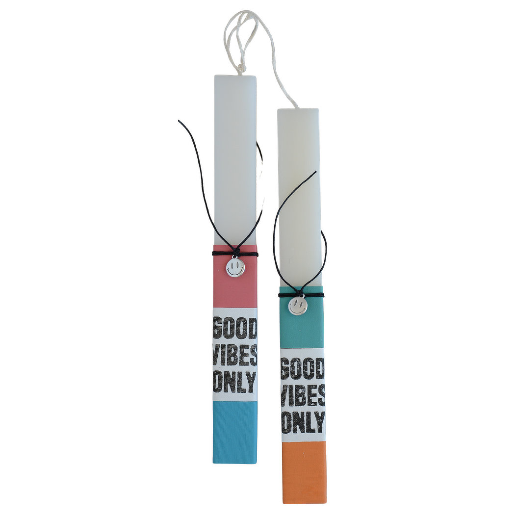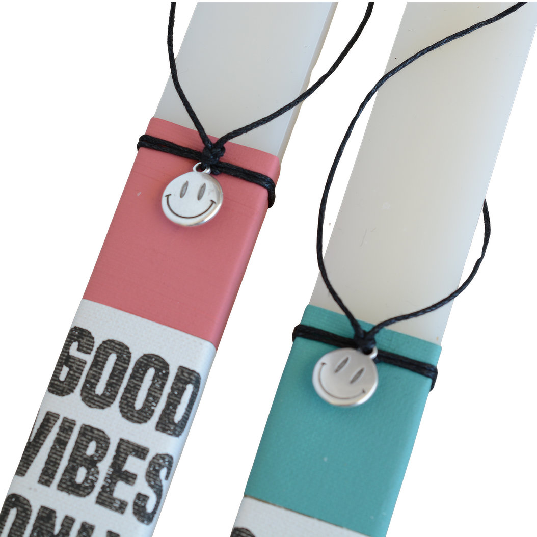 Πασχαλινή λαμπάδα good vibes only με βραχιόλι smiley face σε μαύρο κορδόνι.