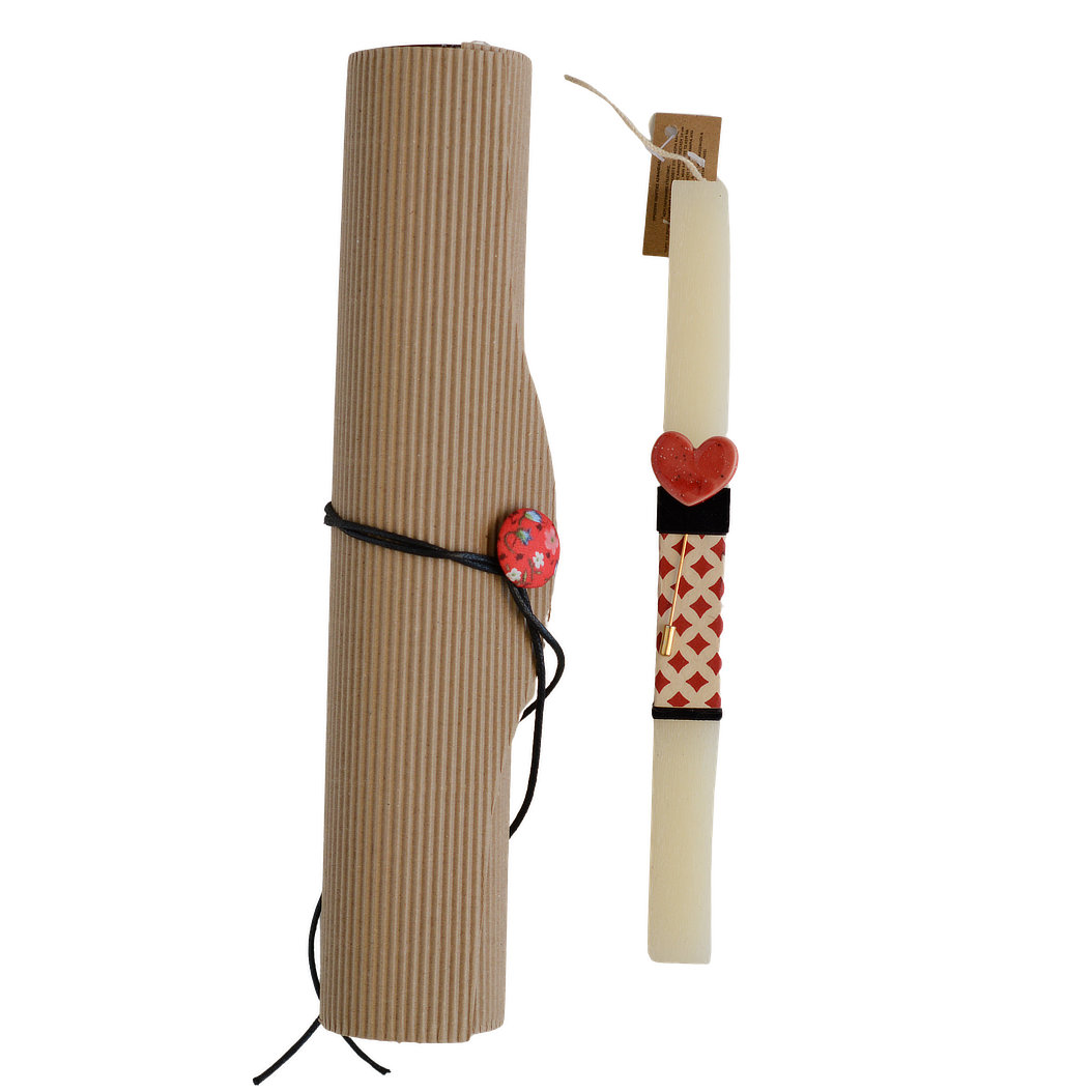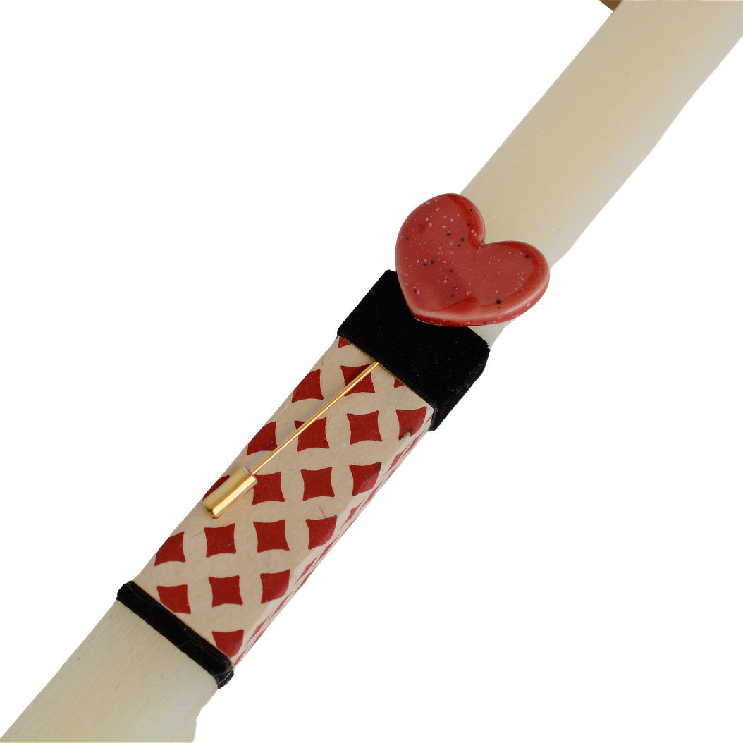 Λαμπάδα κεραμική καρδιά καρφίτσα κόκκινη