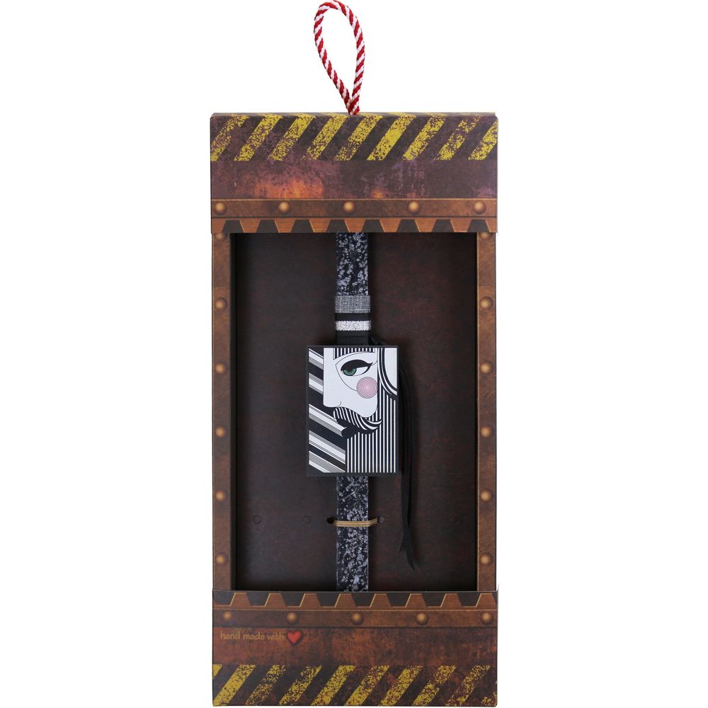 Πασχαλινή λαμπάδα με μαγνητάκι φιγούρας τραπουλόχαρτου Ρήγα. Μια λαμπάδα με πιο λιτό, ανδρικό χαρακτήρα.