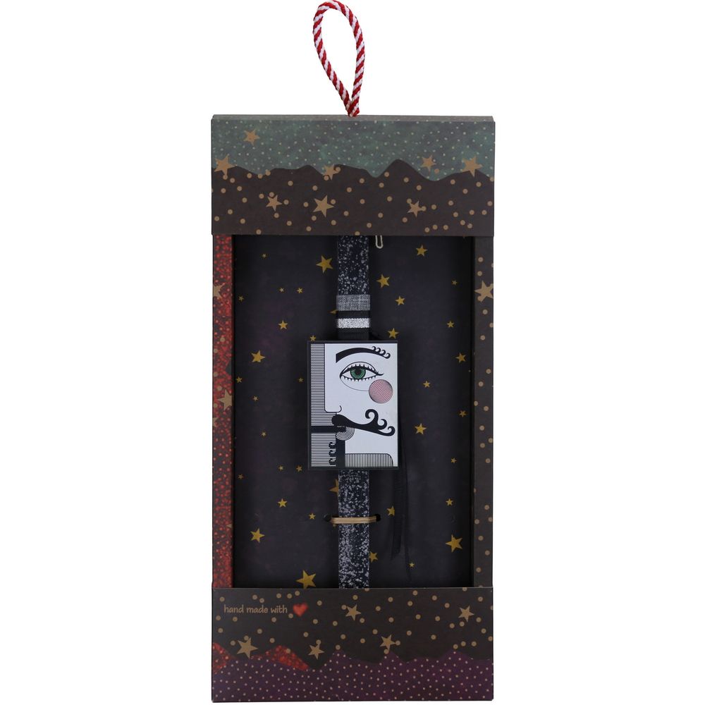 Πασχαλινή λαμπάδα με μαγνητάκι φιγούρας τραπουλόχαρτου Ρήγα. Μια λαμπάδα με πιο λιτό, ανδρικό χαρακτήρα.