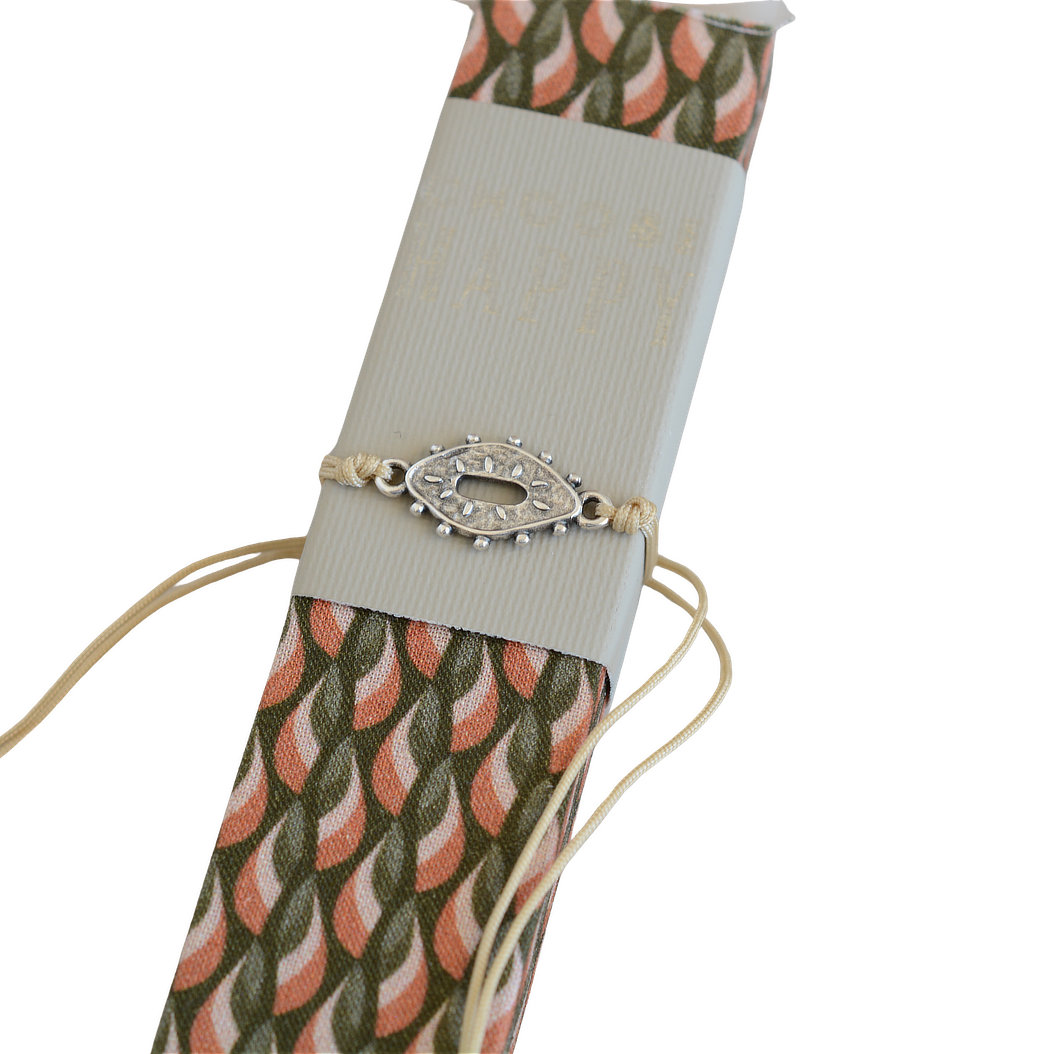 Πασχαλινή λαμπάδα choose happy με κόσμημα βραχιόλι σε λεπτό μπεζ κορδόνι.