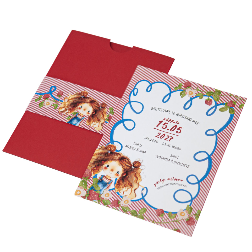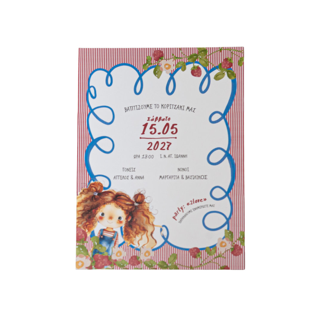 Προσκλητήριο Βάπτισης Κορίτσι – Κορίτσι & Φρούτα Δάσους