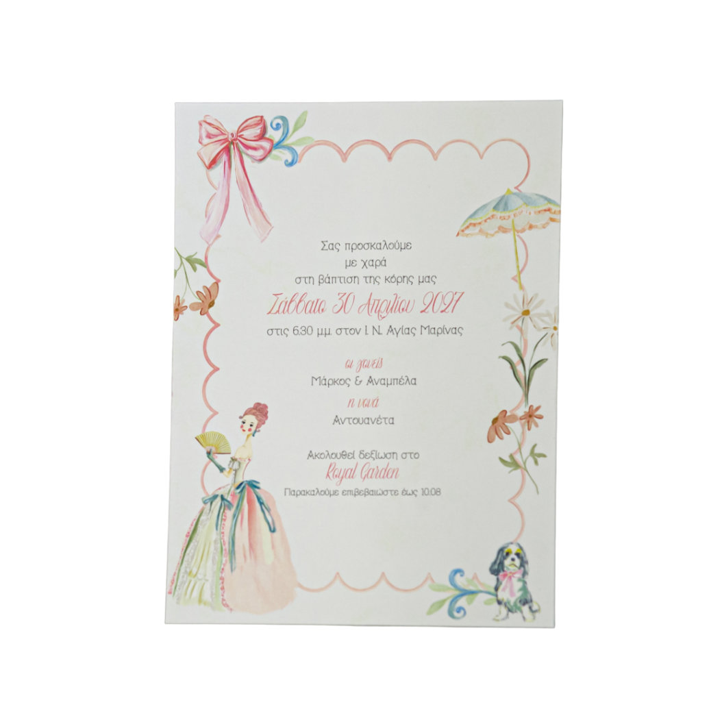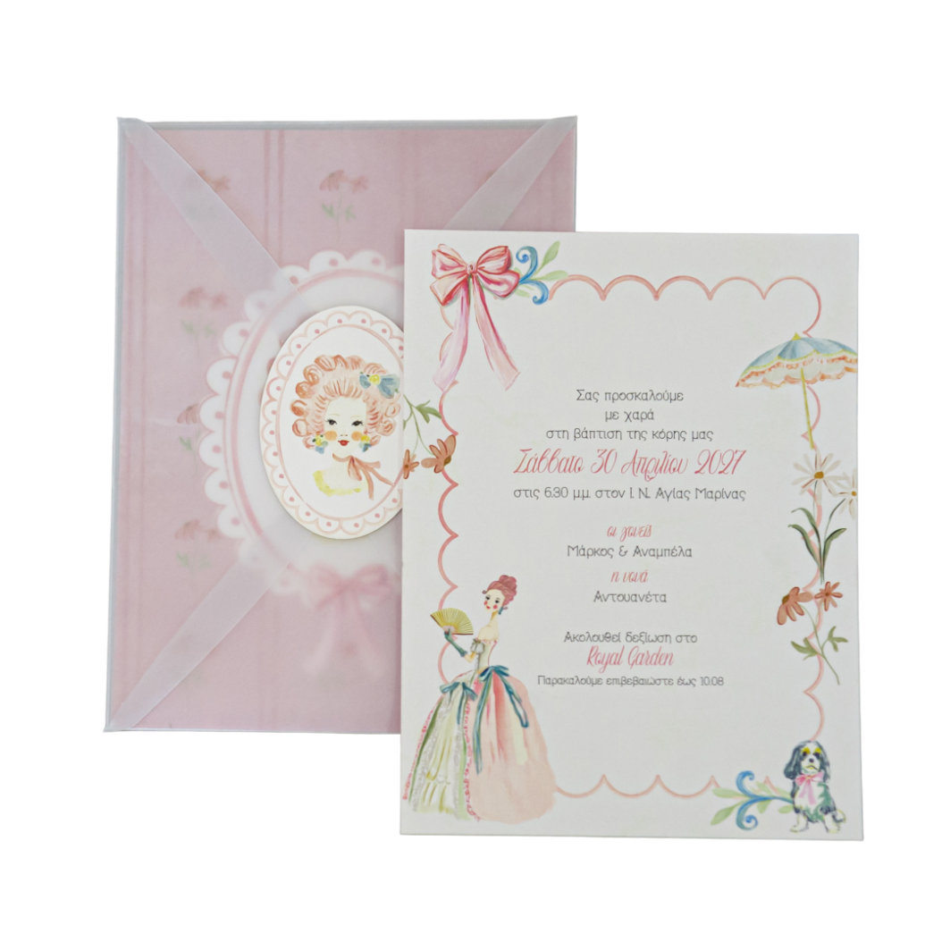 Προσκλητήριο Βάπτισης Κορίτσι – Vintage Κυρία & Λουλούδια