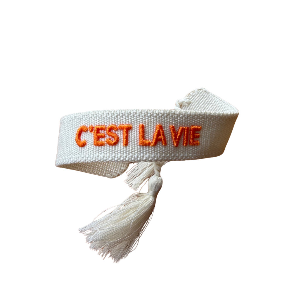 Έτσι είναι η ζωή, και είναι όμορφη. Το βραχιόλι C’EST LA VIE είναι χειροποίητο, κεντητό, και φτιαγμένο για να υπενθυμίζει ότι τα μικρά πράγματα μετράνε. Ιδανικό για δώρο σε κάποια που χαμογελάει εύκολα.